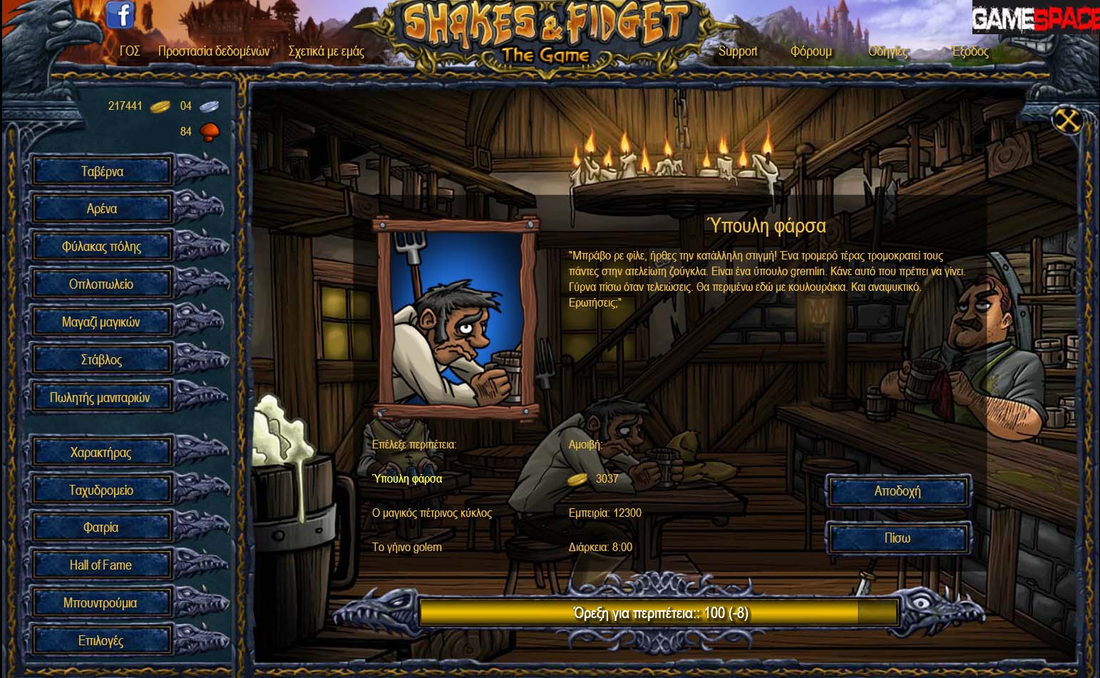 Το παιχνίδι Shakes & Fidget αποτελεί ένα σατυρικό role–playing game. Ακούγεται τρελό, αλλά αυτός είναι και ο κύριος λόγος που οι παίχτες του συγκεκριμένου παιχνιδιού ξετρελαίνονται μαζί του. Βασισμένο στα κόμικς του Oskar Pannier και του Marvin Clifford, το Shakes & Fidget διαθέτει εκατομμύρια φανατικούς θαυμαστές σε ολόκληρο τον κόσμο. Ανάμεσα σε περισσότερες από 20 χώρες, το Shakes & Fidget αποτελεί ένα από τα πιο πετυχημένα browser παιχνίδια.Μπορείς να διαλέξεις ανάμεσα από οκτώ φυλές :