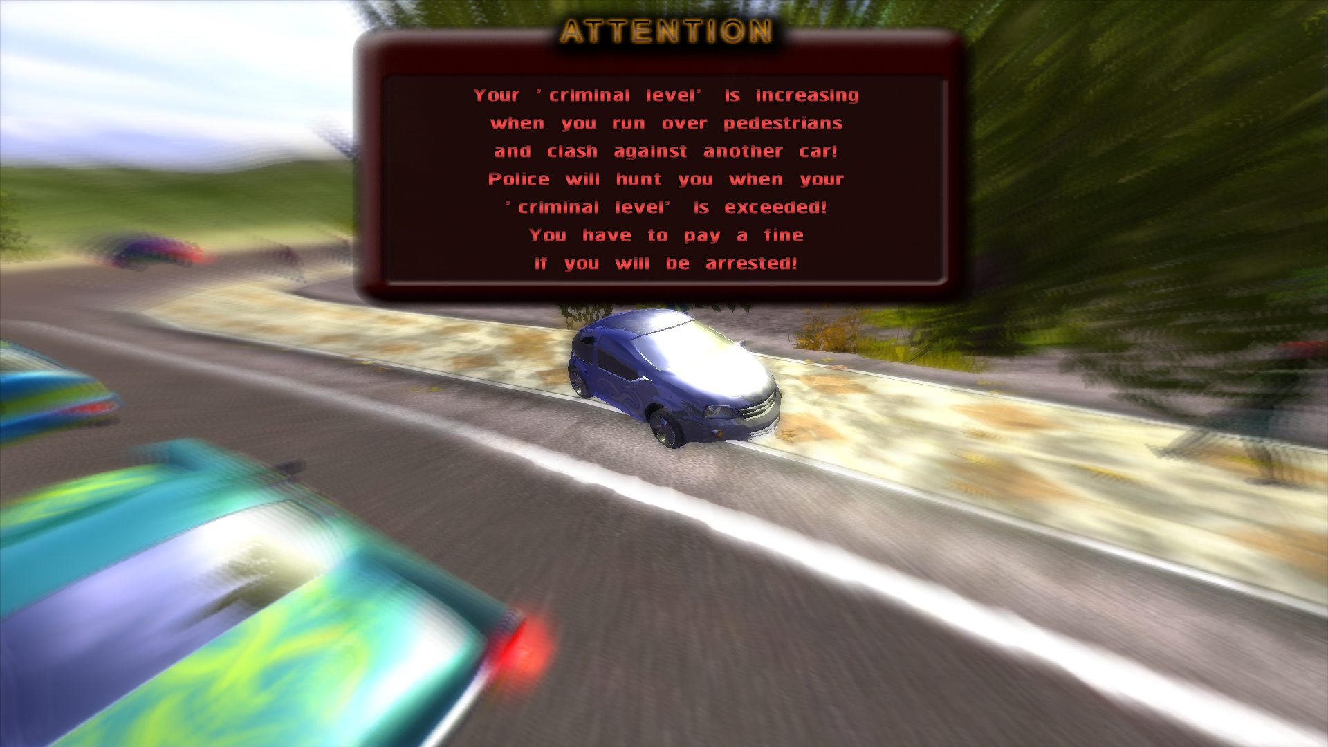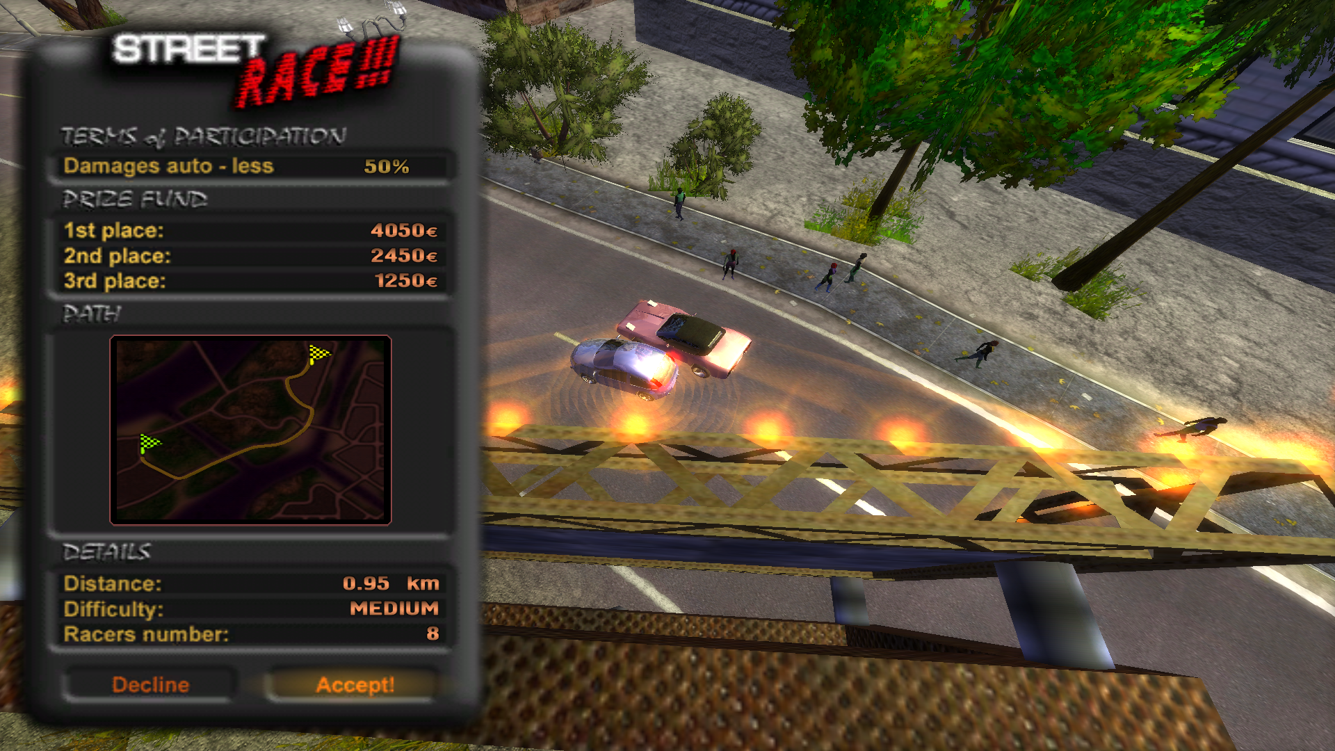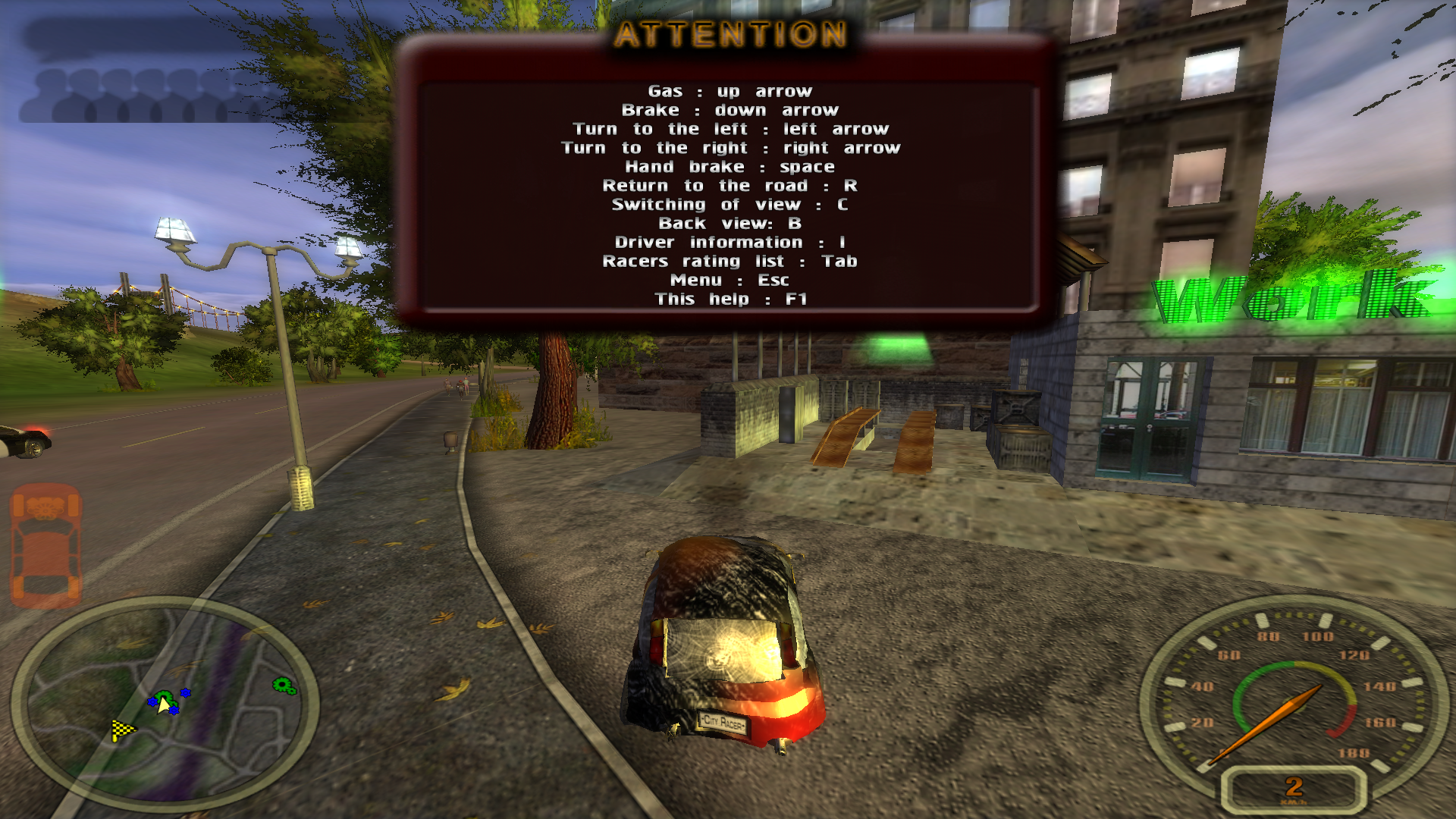 Η πόλη είναι αρκετά μεγάλη, θα σας πάρει λίγη ώρα μέχρι να την μάθετε αλλά και να εξερευνήσετε τις δυνατότητες της. Θα βρείτε πως οι ζημιές στο αμάξι σας γίνονται αρκετά εύκολα, όμως αυτό είναι και το challenge του παιχνιδιού. Προστατέψτε το αμάξι σας από ζημιές και μην πατήσετε πεζούς! Η αστυνομία καραδοκεί! Αφού κάνετε μια πρώτη βόλτα, στον χάρτη αλλά και στην πόλη θα βρείτε τοποθεσίες όπου διεξάγονται αγώνες. Υπάρχουν 2 τύποι αγώνων με 3 επίπεδα δυσκολίας. Εφόσον κερδίσετε τους αγώνες, χωρίς να κάνετε μεγάλο damage στο αμάξι σας, θα κερδίσετε και χρήματα. Με αυτά θα μπορέσετε να αναβαθμίσετε ή να αλλάξετε το αμάξι σας. Σε περίπτωση όμως που το αλλάξετε, δεν μπορείτε να κρατήσετε το παλαιότερο.
