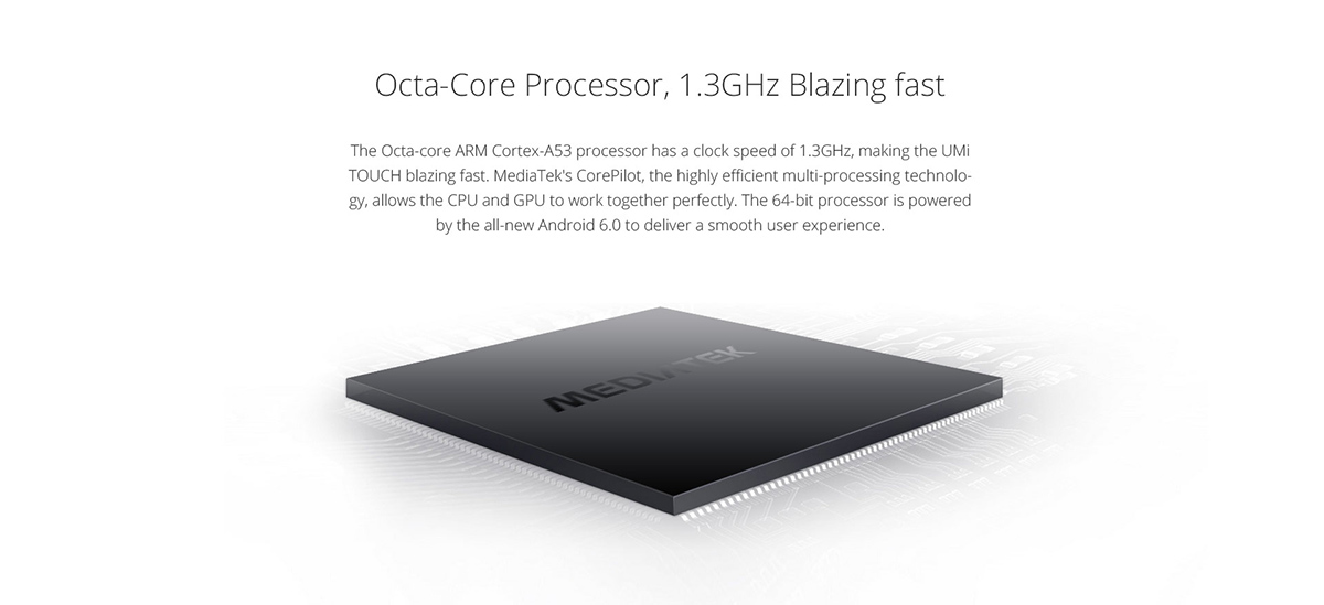 Τα τεχνικά χαρακτηριστικά σε συνδυασμό με καινοτομίες στο software, κάνουν το Umi Touch μία από τις κορυφαίες συσκευές στην mid range κατηγορία. Εντύπωση κάνει πως η εταιρία πέρα του Android 6.0, δίνει την δυνατότητα να εγκαταστήσετε μέχρι και 5 custom ROMs, ώστε να διαμορφώσετε τη συσκευή σας όπως εσείς θέλετε. Ο οκταπύρηνος επεξεργαστής σε συνδυασμό με το chip γραφικών, Mali-T720, κάνει τη συσκευή να μην κολλάει σε καμία εφαρμογή και μπορεί με ευκολία να τρέξει τα τελευταία games. Τα 3GB RAM και 16GB ROM είναι αρκετά για να εγκαταστήσετε οποιαδήποτε εφαρμογή. Αν βέβαια τα 16GB δεν σας είναι αρκετά μπορείτε να τα επεκτείνετε μέχρι και κατά 128GB.