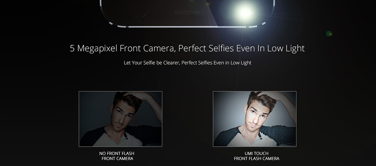 Η 13.0 κάμερα του smartphone, έχει τον κορυφαίο SONY OMX 328 CMOS φακό, με dual tone flash, για να αποθανατίσετε τις αγαπημένες σας στιγμές. Επιλογές όπως live photo, multi angle view, motion track και panorama δεν θα μπορούσαν να λείπουν από το Touch. Στο μπροστά μέρος έχουμε μία 5.0 Megapixel κάμερα, ιδανική για selfie ακόμα και στο σκοτάδι, καθώς η Umi φρόντισε να εγκαταστήσει στη συσκευή και μπροστινό flash.