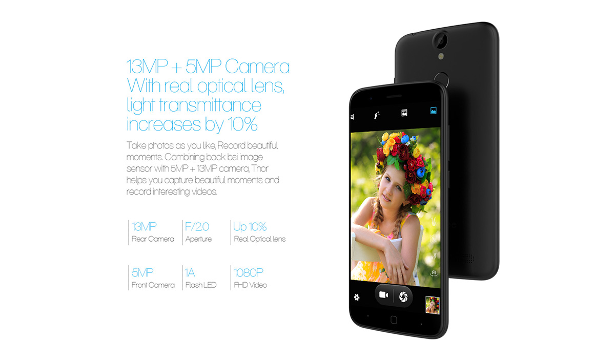 Κάθε smartphone θέλει την κάμερα του. Έτσι και στο Thor, έχουμε μία 13.0 Megapixel στο πίσω μέρος και μία 5.0 Megapixel στο μπροστά. Το λογισμικό της κάμερας είναι ενημερωμένο με τις τελευταίες τεχνολογίες, ώστε κάθε χρήστης να γίνει ο επιδέξιος φωτογράφος που θέλει και να αποθανατίσει τις αγαπημένες του στιγμές.