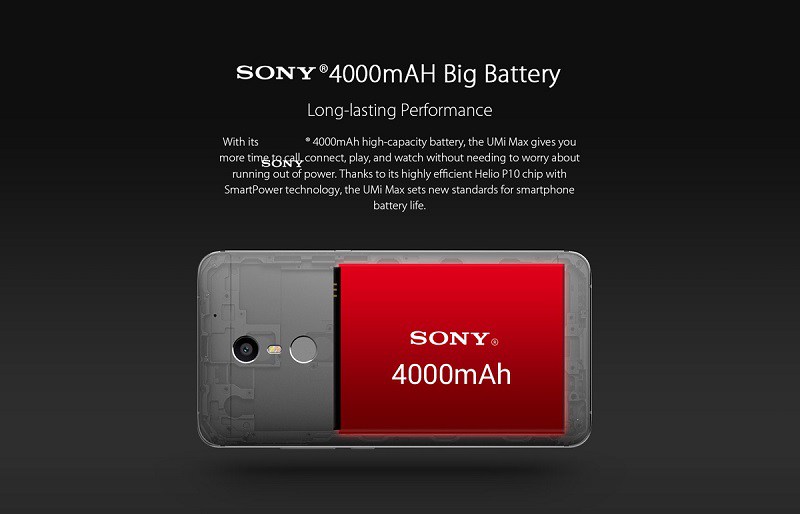 Η μπαταρία της συσκευής είναι Sony στα 4000 mah. Με σταθερή χρήση κρατάει περίπου μιάμιση μέρα, ενώ με παρατεταμένη, όπως το να παίζεται παιχνίδια και να βλέπετε ταινίες, σας βγάζει τη μία μέρα. Ακούγοντας μουσική η UMi σας δίνει μέχρι και 60 ώρες ενώ, στο stand by, η συσκευή ξεπερνάει τις 264 ώρες.
