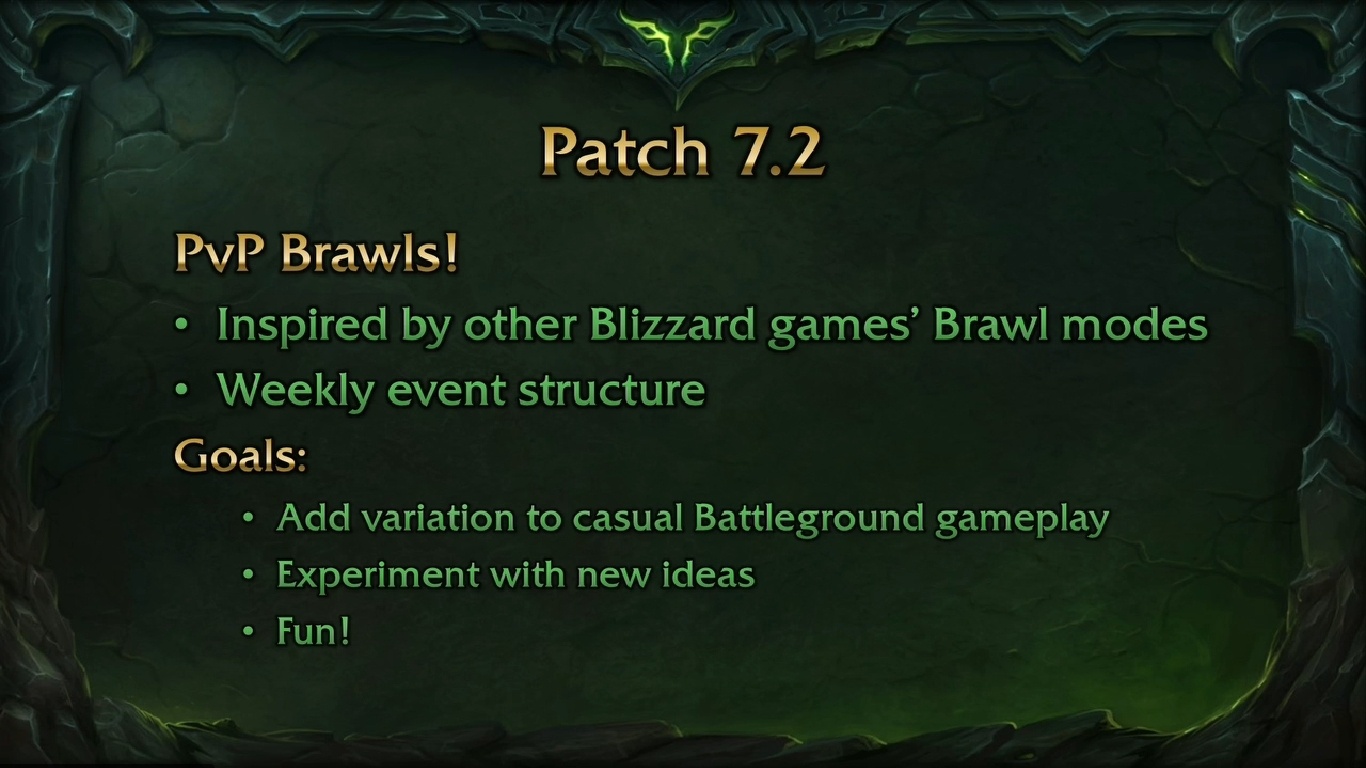 Το Patch 7.1.5 αντιπροσωπεύει ένα νέο είδος «μικρών» patches που επεξεργάζεται η Blizzard για να διασφαλίσει ότι το περιεχόμενο θα ανανεώνεται πιο συχνά. Τα μικρά patches θα επικεντρωθούν στις προσθήκες που θα παραμένουν μακροπρόθεσμα στο παιχνίδι και όχι στο περιεχόμενο που ταιριάζει μόνο εντός των ορίων του κάθε expansion. Στην περίπτωση του 7.1.5, αυτό σημαίνει συγκεκριμένες προσθήκες. Τα έξι dungeons από το expansion του 2012 Mists of Pandaria θα γίνουν μέρος των χαρακτηριστικών timewalking runs, τα οποία επιτρέπουν στους παίκτες να αντιμετωπίσουν τα παλαιότερα dungeons στο μέγιστο επίπεδο δυσκολίας με ειδικές cosmetic ανταμοιβές. Το Brawler’s Guild θα επιστρέψει με δεκάδες νέα bosses, συμπεριλαμβανομένων νέων «raid» συναντήσεων που θα τραβήξει και άλλους παίκτες που απλά κυκλοφορούν έξω από την αρένα. Η αρένα Blade’s Edge PvP θα ανανεωθεί επίσης.