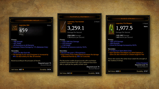Έχουμε όλοι βρεθεί σε αυτήν την θέση. Το stash μας είναι γεμάτο με όλα τα διαφορετικά σύνολα και τα θρυλικά αντικείμενα. Απλά θέλετε να κάνετε ένα διάλειμμα από τα Greater Rifts και να ασχοληθείτε με Death’s Breaths, αλλά ποιος έχει χρόνο για να αλλάξει skills και gear; Με την εισαγωγή του Armory γίνεται ευκολότερο από ποτέ να αλλάζετε απρόσκοπτα μεταξύ των αγαπημένων σας στυλ παιχνιδιού. Το Armory είναι ένας διαχειριστής εξοπλισμού που αποθηκεύει έως και πέντε πλήρη sets για τους χαρακτήρες σας. Αυτό περιλαμβάνει skills, passives, items, τις δυνάμεις Kanai’s Cube, ακόμα και τα Legendary Gems σας. Το Armory θα έρθει στο Diablo III το 2017.