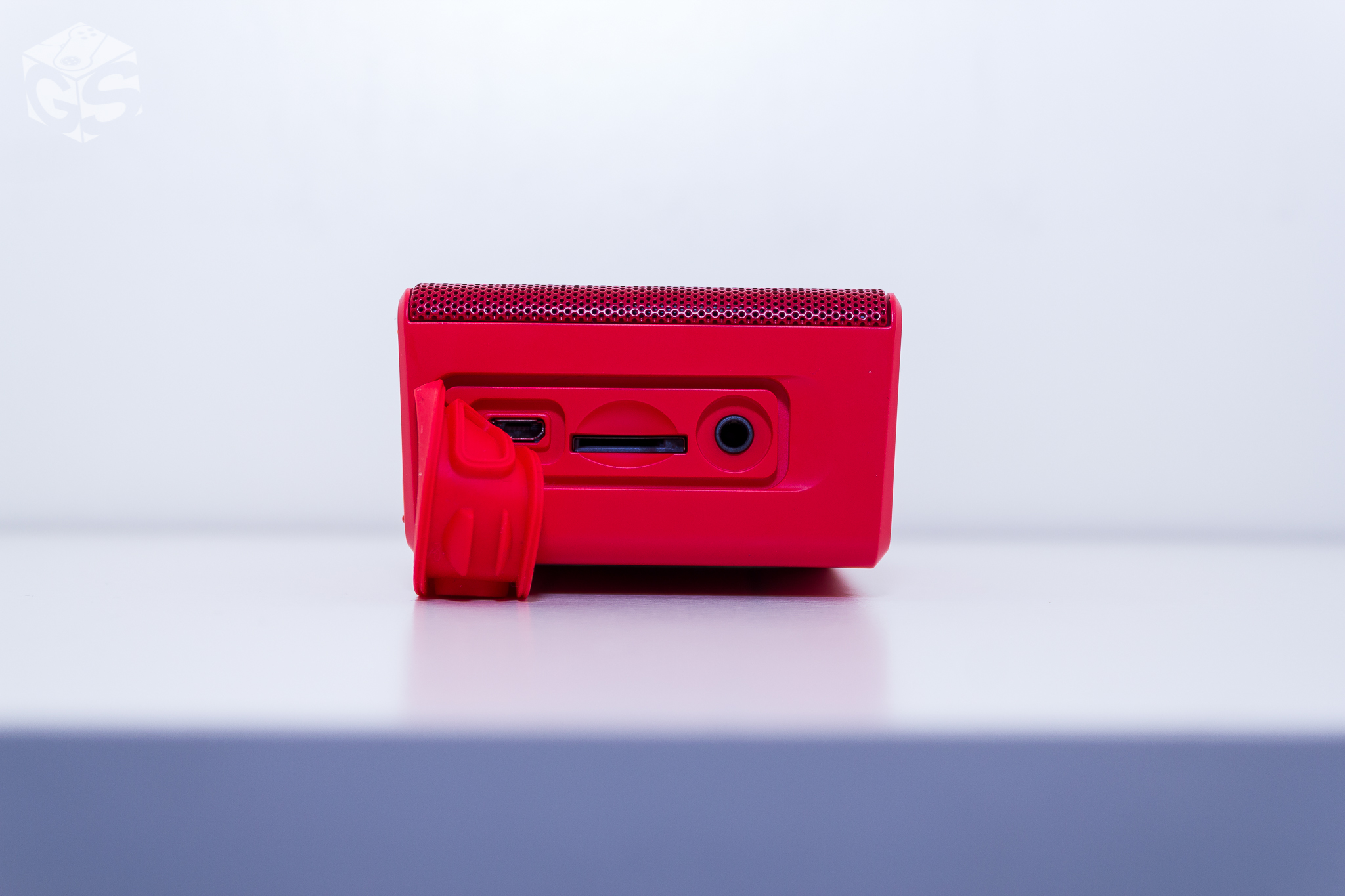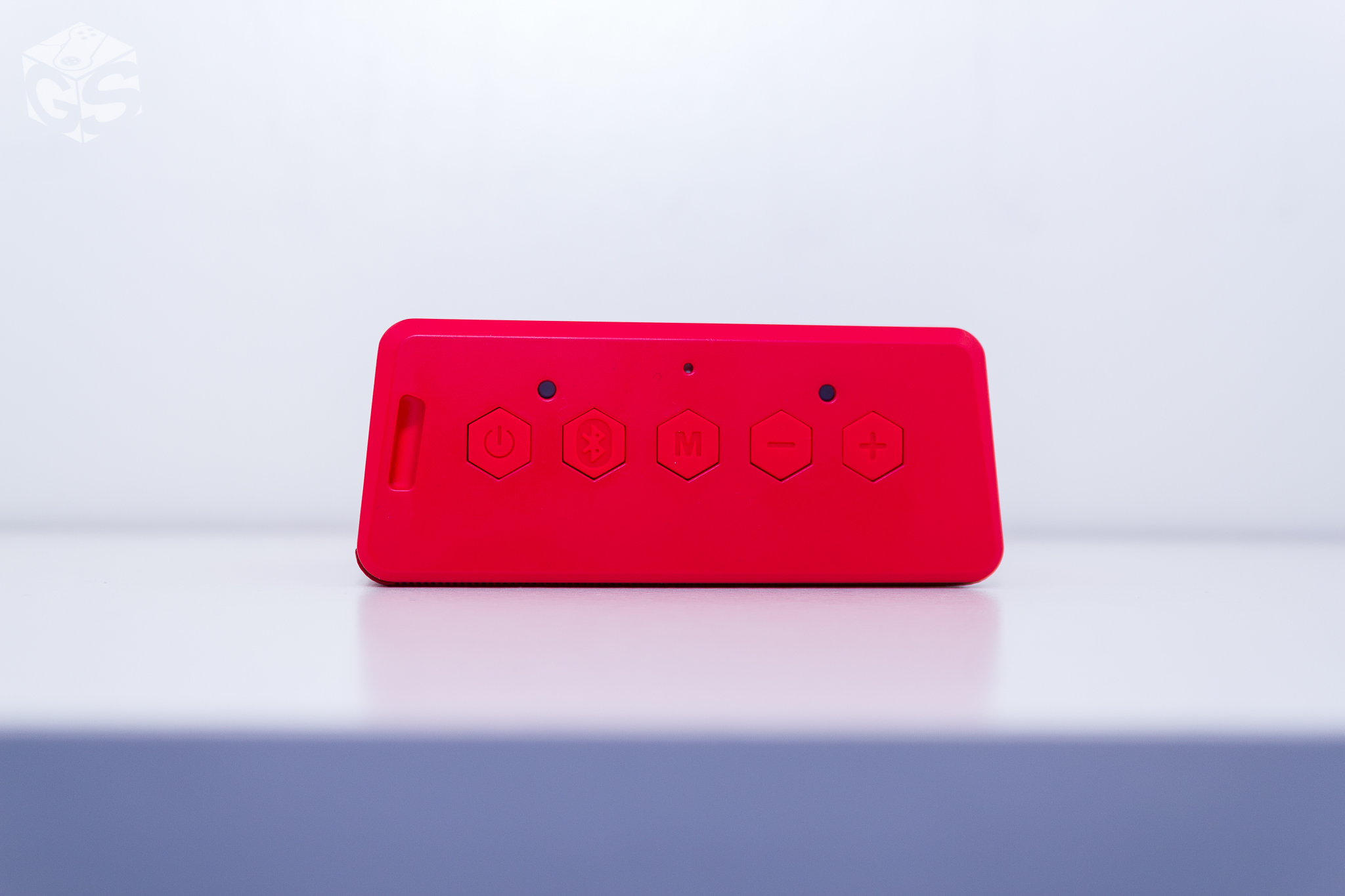 Από αριστερά προς τα δεξιά έχουμε το Power Button, το πλήκτρο σύζευξης Bluetooth, το Multifunction Button και τα πλήκτρα ελέγχου της έντασης του ήχου. Με το MF Button μπορείτε να αλλάξετε ανάμεσα στα Modes, AUX input, Bluetooth, microSD Card και Usb Audio, ενώ ταυτόχρονα η δεξιά ένδειξή αλλάζει χρώμα αντίστοιχα. Το αριστερό LED είναι η ένδειξη της μπαταρίας.