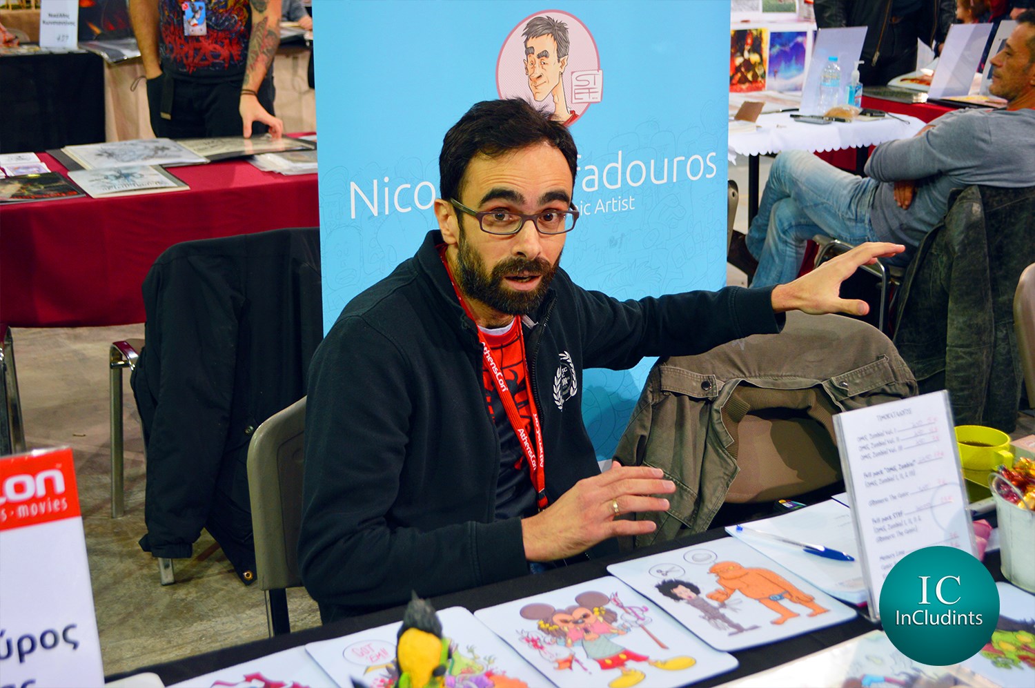 Η αρένα του κλειστού Παλαιού Φαλήρου ήταν γεμάτη από πάγκους σκιτσογράφων, εικονογράφων, συγγραφέων και καλλιτεχνών γενικότερα. Ήταν μια εικόνα που σε γέμιζε αισιοδοξία για την ελληνική παρουσία στον χώρο του μυθιστορήματος, της καλλιτεχνικής σκιτσογραφίας άλλα και των κατασκευών πάσης φύσεως γενικότερα. Η θεματολογία τους κάλυπτε ολόκληρο το φάσμα της ποπ κουλτούρας, αλλά υπήρχαν και δημιουργίες οι οποίες θα ικανοποιούσαν και τα πιο απαιτητικά γούστα ειδικά στον χώρο του fantasy. Εκατοντάδες graphic novels, comics, αφίσες, σελιδοδείκτες, prints και σκίτσα για να επιλέξεις. Δεν έλειπαν φυσικά και τα λογοτεχνικά βιβλία, η θεματολογία των οποίων περιστρεφόταν κατά κύριο λόγο γύρω από το fantasy. Όλοι οι καλλιτέχνες ήταν πάντα πρόθυμοι να συζητήσουν και να φωτογραφηθούν με το κοινό, και να υπογράψουν την δουλειά τους. Υπήρχε τέλος η δυνατότητα να μιλήσεις με μέλη, ή και να γραφτείς ακόμα σε λέσχες φίλων comics, fantasy, κινηματογράφου και gaming.