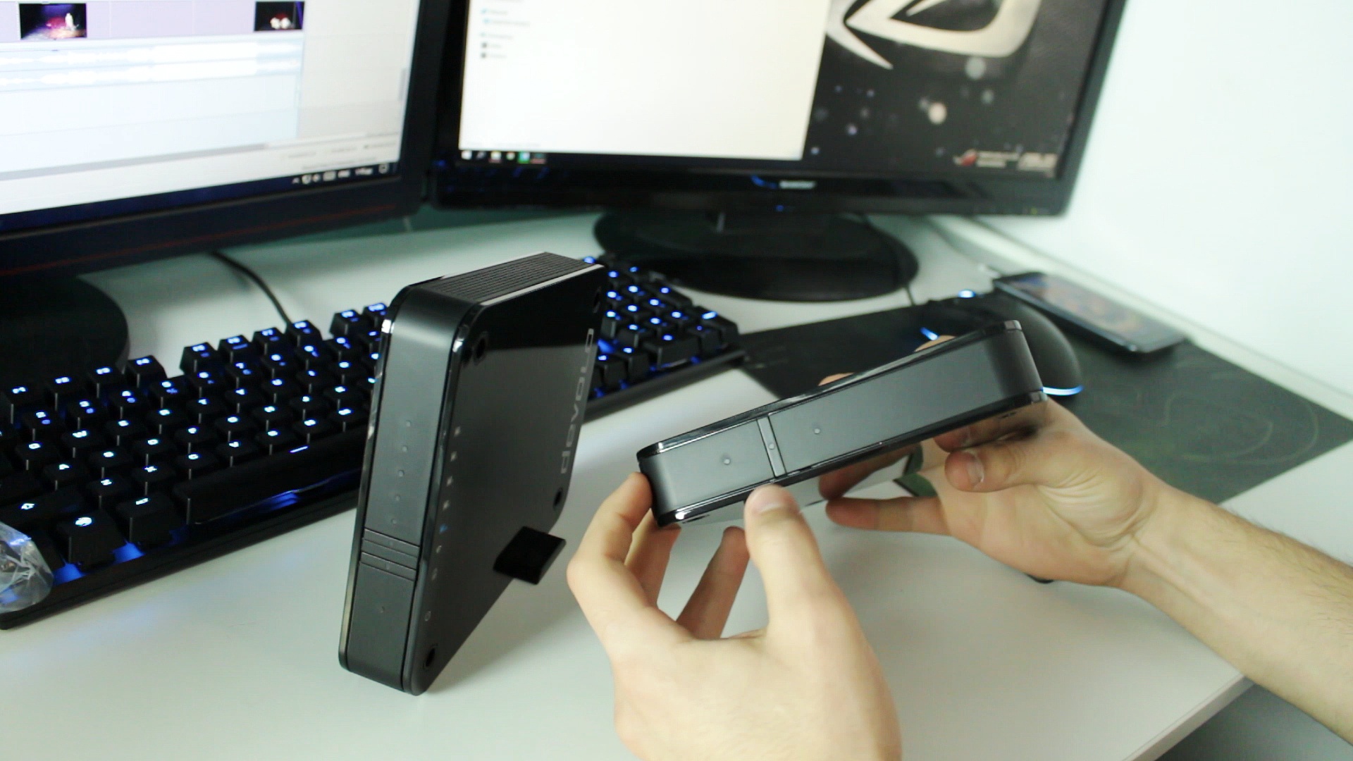 To GigaGate αποτελείται από 2 συσκευές, το Base και το Satelite. Οι δύο αυτές συσκευές, είναι κατασκευασμένες από πλαστικό ενώ έχουν ένα ιδιαίτερο glossy φινίρισμα. Το χρώμα τους είναι μαύρο, ενώ φέρουν και οι δύο to logo της εταιρείας. Έχουν ειδικό ποδαράκι για να στέκονται το οποίο μαζεύει μέσα στη συσκευή και διαθέτουν και θέσεις για να τα στηρίξετε στον τοίχο. Το Base είναι το κομμάτι που συνδέεται στο μόντεμ, με ethernet καλώδιο, και μεταφέρει το σήμα στο Satelite. Με την σειρά του το Satelite λειτουργεί τόσο ως Wired Access Point, παρέχοντας 4 Fast Ethernet Ports και μία Gigabit Ethernet Port, αλλά και ως Wireless Access Point. Τόσο το Base, όσο και το Satelite, έχουν τα απαραίτητα LED με ενδείξεις για την σωστή λειτουργία του Kit. Επίσης και οι δύο συσκευές έχουν εξωτερικό τροφοδοτικό.