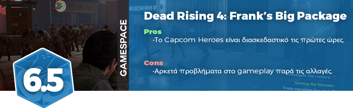 Το review για το Dead Rising 4 ήταν ο χειρότερος τρόπος να κλείσει το 2016 για εμάς. Το παιχνίδι αποτελεί το χειρότερο της σειράς, ενώ ταυτόχρονα υπήρχαν στιγμές που ήταν κάπως διασκεδαστικό. Αυτό μέχρι να πέσετε πάνω σε έναν από του μεγάλους τοίχους που ύψωναν τα αμέτρητα αρνητικά του παιχνιδιού. Ένα χρόνο μετά καλώς ή κακώς η αποκλειστικότητα του παιχνιδιού έσπασε και ελπίζουμε μαζί με την έκδοση για Playstation 4 να δούμε και ένα καλύτερο παιχνίδι.
