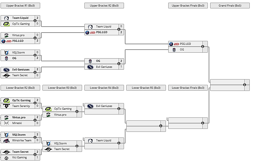 Μετέπειτα από το παραπάνω χάρμα οφθαλμών, είχαμε ακόμα να δούμε τους EG με τους OG, και την ταλάντευση του Fly ανάμεσα στην προσφάτως παλιά του ομάδα και την φρέσκια νέα του ομάδα. Παρατηρήσαμε έναν άλλο αέρα στους OG και μία άλλη σοβαρότητα. Δεν ξέρουμε φυσικά αν ήταν κάποια κίνηση εκδίκησης στον Fly, κάποιο παιχνίδι επίδειξης δύναμης ή μία κραυγή «Κοίτα τι χάνεις Fly!» από πλευράς OG αλλά σίγουρα είναι κάτι που θα θέλαμε να ξαναδούμε. Η πιο τρελή μου σκέψη είναι ότι οι EG κάθισαν επίτηδες να χάσουν για να μην αντιμετωπίσουν τους Κινέζους στον ημιτελικό του Upper Bracket, αλλά να πλοηγηθούν μέσω Lower Bracket απευθείας στον τελικό (όπου βέβαια πρέπει να περάσουν πάνω από τους Liquid). Είναι όμως κάτι ίσως λίγο τραβηγμένο, γιαυτό ας σταθούμε στην επάξια νίκη των OG με 2 – 1 κατά των EG. Ο εξαιρετικά κακός Sumail του πρώτου Game πλήρωσε τα στραβοπατήματα του απέναντι στον Invoker Topson, ο οποίος ενώ φαινόταν πολύ κακός στην αρχή, μετά βρήκαν δρόμο τα δάχτυλά του και παρέα με τον Jerax στο τιμόνι του Earthshaker μας χάρισαν εξαιρετικά Combos και epic plays. Για τον 7ckng Mad το έλεγα όταν ήταν Mid και συνεχίζω και το λέω και τώρα που είναι 4άρι, ότι δεν παίζει καθόλου καλά. Αυτά τα plays που είδαμε με Enigma είναι κάτι που δεν θα θέλαμε να ξαναδούμε, γιατί αν πιστεύει ο Mad ότι τέτοια Black Holes κερδίζουν στον Μεγάλο Τελικό είναι γελασμένος. Ευτυχώς που Invoker και Earthshaker διόρθωναν τα λάθη του με τα hard engage και το zoning.