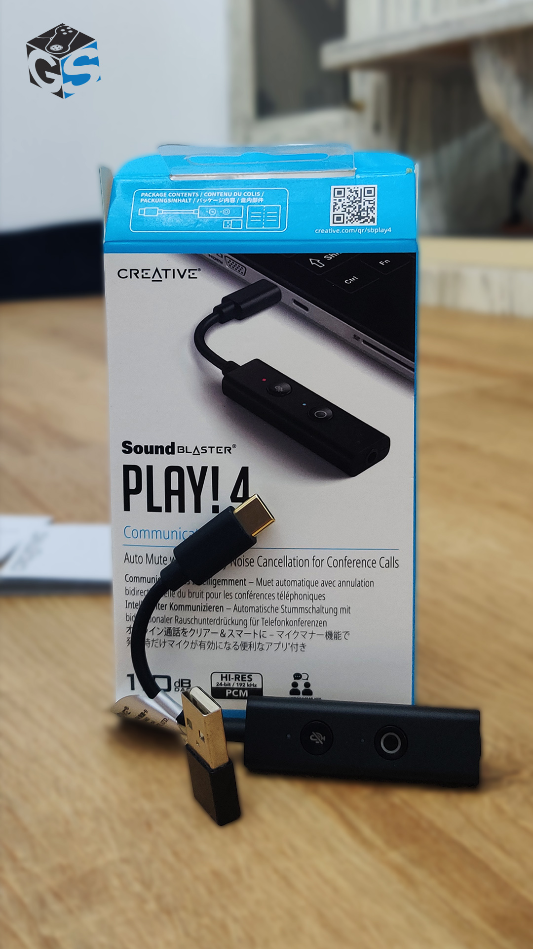 Η Creative επέλεξε να βελτιώσει την PLAY!3 έκδοση της με το νέο, αναβαθμισμένο PLAY!4, το οποίο είναι μια εξωτερική διεπαφή ήχου που στόχο έχει να βελτιώσει την εμπειρία ήχου σας. Είναι δημιουργημένο έτσι ώστε να μπορεί να καλύψει ανάγκες όπως είναι η τελεργασία ή ακόμα και η επεξεργασία ήχου/μικροφώνου σε παιχνίδια.Στο πακέτο θα βρείτε μέσα το dongle, έναν αντάπτορα USB Type-A και τα εγχειρίδια χρήσης. Όπως θα δείτε, στο dongle υπάρχουν 2 hardware κουμπιά- ένα της σίγασης και ένα EQ.